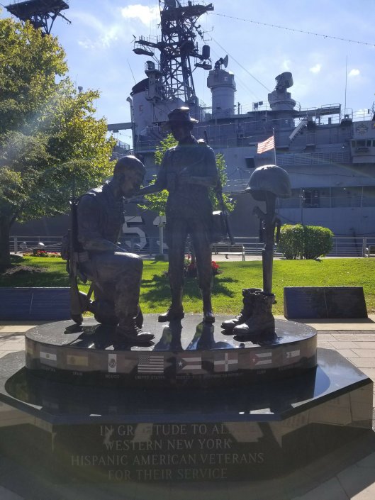 We left the Finger Lakes and hit the NY Thruway to Buffalo. I had never seen the Erie Canal, and when you’re this close, it really is a must do. We stumbled onto the Buffalo Military Park and Museum right on the Buffalo River. The park has monuments to every war from WWII to present, and recognition of every branch of the military.  There were three former Navy boats which could be toured – the destroyer USS The Sullivans, cruiser USS Little Rock,  and a submarine, the USS Croaker.  Mom recognized the name of the submarine, and more than likely we knew or know someone who served on board. I did ask Mom if she wanted to tour the sub, but she declined. (We have both had a sufficient number of personal tours back in the day!) We had to imagine Dad was likely grinning from ear to ear that his “girls” were wandering around a Naval Museum – willingly and without him present! There is clearly a very active retired military population in the Buffalo region. (Why anyone would retire to an area that gets the winters Buffalo does is beyond me, but I’m grateful for their dedication to the park and preserving history.)
