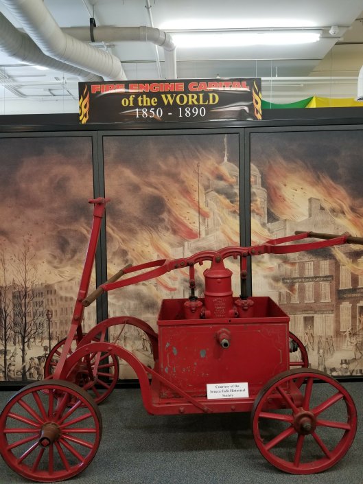 We slept in a bit today (8 AM), but we were up before the alarm clocks went off. We weren’t in a big hurry today as it was one of our shorter drive days. We were underway by 10:30 andplanned to stop for breakfast along the way. Neither of us was really hungry, and none of the reviews for places along the way really jumped out. We meandered south into Seneca Falls, the town which the movie It’s A Wonderful Life is said to be based upon, and home to the Women’s Rights National Historical Museum. I was really disappointed the museum was closed Mondays and Tuesdays. The visitor center had a great display. and the empty storefronts in town also had displays of the women’s rights movement through the years. I also stumbled into the best store and completed a good bit more of my Christmas shopping!