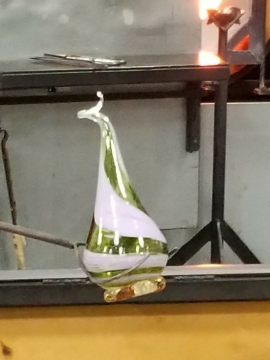 Lunch was at Parker’s Grill and Tap House. A glass of local wine and a shared sandwich, and we were ready to hit our next adventure. Mom did not know I had purchased tickets for us to make our own glass at Corning Glass Museum. I made a flower, but didn’t get a picture of the final product because I had large, heat resistant gloves on, and others aren’t quite comfortable using the camera on their phone yet. It will just be a wonderful surprise to me when it arrives at home about the same time I do! Mom did a blown glass sculpture. Proof that even “non-creative” people can be very creative when forced to be!