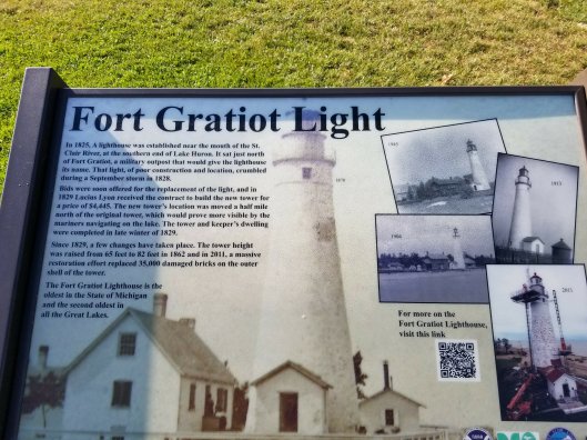 We started the day in Port Huron and a visit to the Fort Gratiot (Grash-ut) Lighthouse. It is the second oldest lighthouse on the Great Lakes, and the oldest lighthouse in Michigan. It was a beautiful day, blue sky as far as the eye could see, and the water calm and blue. Port Huron is a quaint little town, and close to the water it feels like time stopped and the world grew around it.