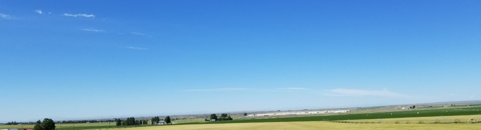 We hit a bit of rain which cleaned the bugs of the windshield and helped with visibility as we left Salt Lake City. We crosssed into Idaho about 2:40PM, and watched vast green farmland come into view. I took a break from driving so was able to get some photos along the way.