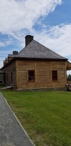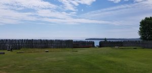 The sky looked a bit overcast and gray as we started, but soon cleared. Could we be so lucky as to avoid rain yet another day? We crossed back into the US a little after 11AM. A quick stop for gas as I’d forgotten to check the fuel level before we left Thunder Bay, changed the settings from metric to US, and we drove the short distance to our first stop, the Grand Portage National Monument. An incredible historic fur trading site that has live demonstrations and docents to answer any and all questions.