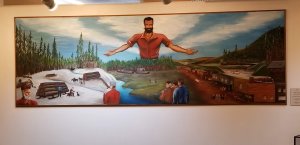 Monday dawned sunny and bright. Our last day on the road. We were both glad we’d opted to bring in the bare minimum the night before as the elevator was being serviced. Two trips down the stairs and we were loaded and ready to go. First stop was The Paul Bunyan Logging Camp and Museum. Another fun, educational and interactive museum. We learned a lot about the early days of logging, and I learned my paternal great-grandfather was a logger in New Hampshire. The museum is supported and run by the local Kiwanis Club. They do an excellent job, and really bring the story of Paul Bunyan to life. I read the book many times growing up, and now need to reread it with the background information I now have.