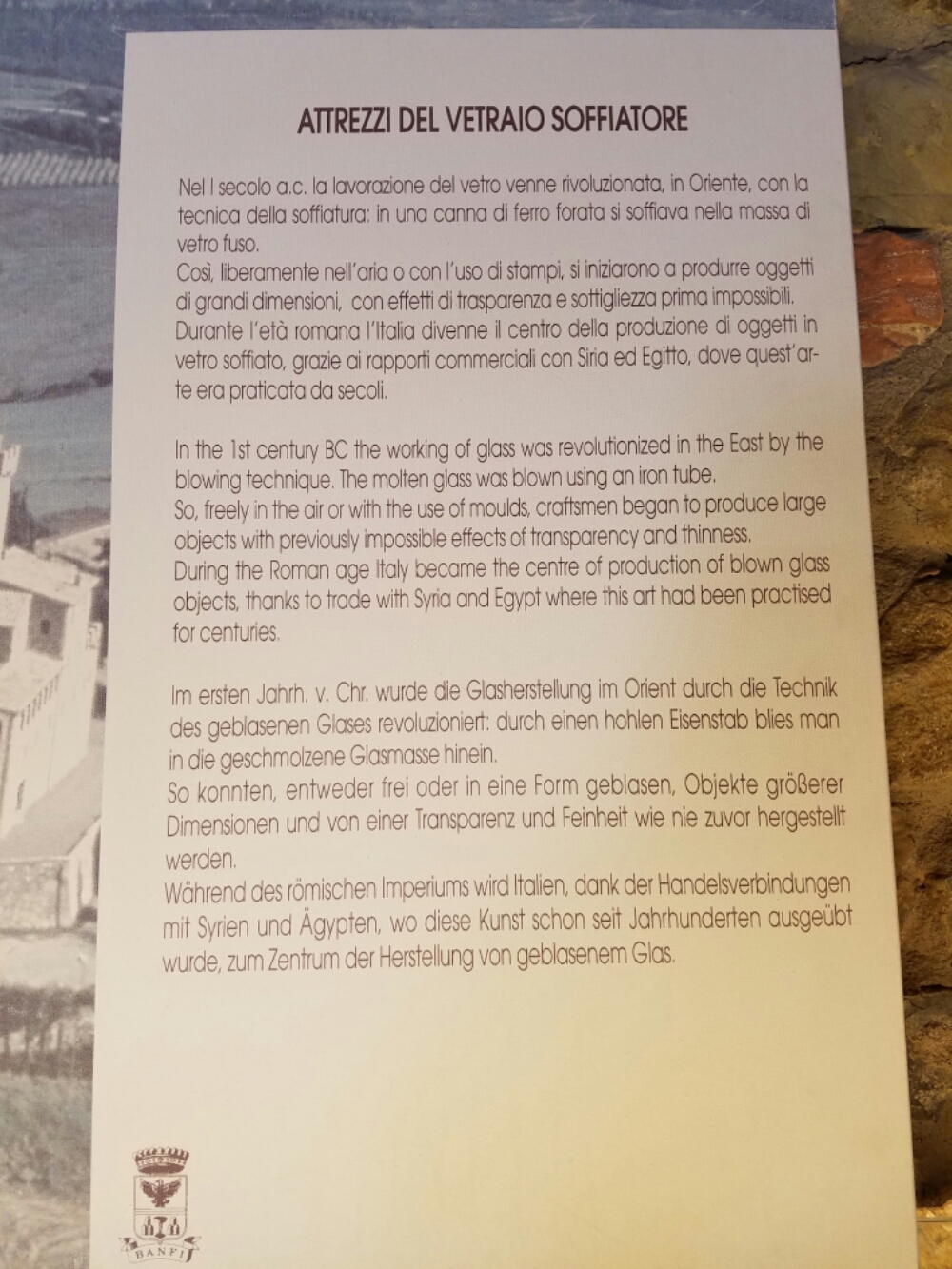 Our tasting was followed by a self-guided tour of the glass museum. The have containers and decanters dating back to BC times up to modern day.  Even a Picasso designed decanter! Very interesting to see how glass has evolved over the centuries.  As we were leaving we met a couple who live not far from us in the States and who had a connection to the other couples in our group. Quite a serendipitous meeting, and we have exchanged contact info so we can get together when we return home.