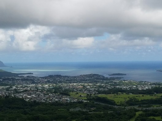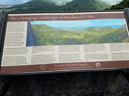 Second stop was the Pali Lookout. The last time I was here was June 1973, a few days before we moved back to New England. My dad took me and my best friend to the Pali Lookout to see the sunrise. He probably just wanted an excuse to take more photos of a sunrise, and I likely wanted a special last day with my best friend. I remember drinking hot chocolate, and it being very cool (as in cold). Today was windy and a bit misty, but such stunning views!