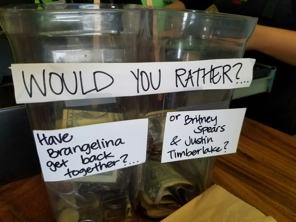 We decided to do a quick stop at the coffee factory we visited earlier in the trip for an afternoon pick-me-up before hitting traffic into Waikiki.  I had to take a picture of the tip jar sign. Clever way to get people to leave their change behind! And, no, I will not say which jar I chose.  As we were leaving we were blessed with a rainbow. A wonderful reminder that the sun always comes out, no matter how long or hard the rain.