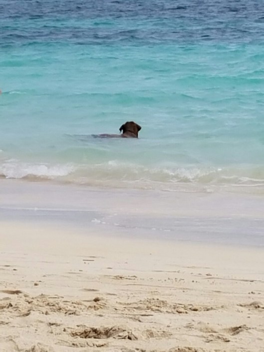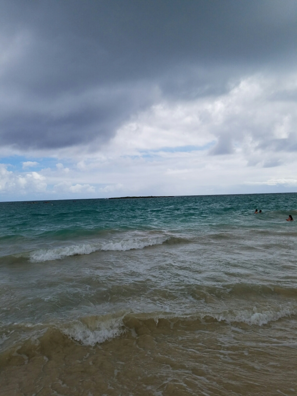 It was misting and windy, so we opted to drive a few miles further south to Lanikai where we found a spot to park and walked to the beach.  We pulled out the tatami mat, and sat in the sand for about an hour. I did get my legs wet, and managed to avoid the temptation of going all the way in. The last thing I wanted to do was ride to Waiamea in wet bathing suit, and the rental car did not need a wet seat, either. We watched a dog play fetch in the water, and lots of little kids learning to swim and playing in the surf.