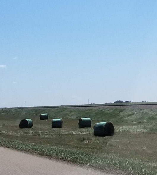 A bit west of Swift Current we spotted what initially loooked like a herd of goats on the side of the road. As we got closer, we both did double takes, and it took us a moment to realize it was a herd of alpacas. Given it was still 80+ degrees fahrenheit, we opted not to stop and check out the alpaca goods for sale. A short bit later as we approached Lake Chaplin, we saw what appeared to be mounds of snow. I knew in this heat it definitely was not snow, but neither of us had a clue what the piles of “white stuff” were. I surmised salt or lime as a small tractor to my left was making its way up a pile. Mark that down as something to research when we get to the room tonight…