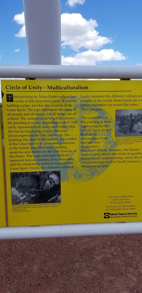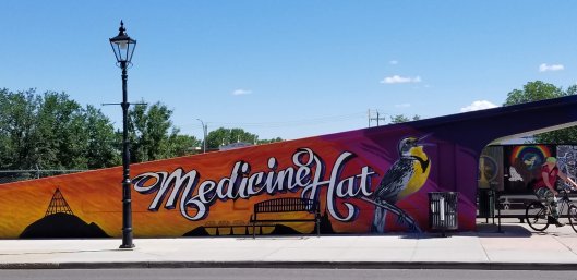 We started the day with a short walk through Medicine Hat. A quaint town with great shops, restaurants and public art work. It was a bit warmer than usual, so our walk was rather limited. We stumbled upon the Inspire Cafe for what we hoped would be a late breakfast, but it turned out to be an early lunch. Mom had tomato garlic soup and a curried egg salad sandwich on raisin bread. I had curried lentil soup and fried egg and cheese sandwich. We got there just before the lunch crowd arrived, and they were doing a very steady business when we left. Great art work on display and for sale around the cafe, and artists’ studios/work areas beyond the cafe.
