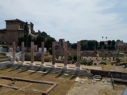 Lunch was at a small pizzeria around the corner, and very good. We rested, chatted and enjoyed the air conditioning as long as possible. We then hit the streets to the ancient part of the city…the Forum of Trajan (112 – 113A.C.) and Forum of Augustus (2 B.C.)