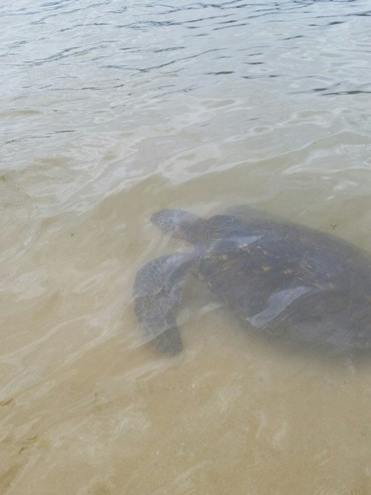 We were lucky to have a turtle come very close to shore (the waves kept washing it up, and he didn’t seem in much of a hurry to leave), so I was able to get some better pictures.  Such an incredible experience!
