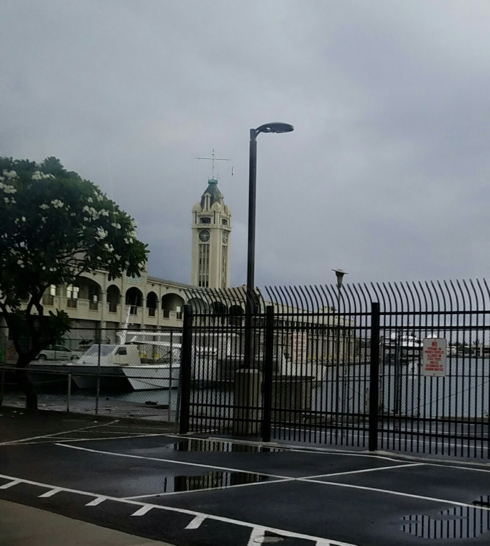 After all the excitement of seeing the honus, we dried off and boarded the bus.  A stop at the Dole Pineapple Factory for those who were still hungry and wanted a pineapple whip (we both passed but wandered around the gift shop), then it was on to the final bit of our journey, down the west coast and back to Waikiki.  We dropped one couple off in downtown Honolulu just near the Aloha Tower, once the tallest structure in Honolulu.
