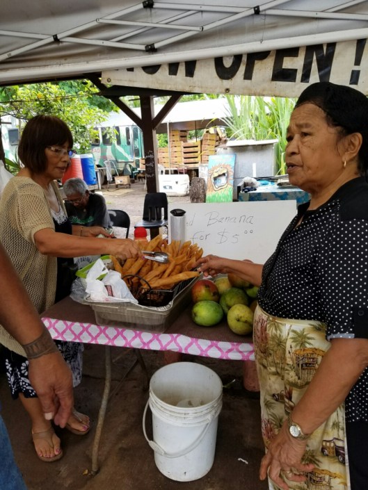 After lunch you need dessert, right? And why not a Hawaiian fried banana and fresh fruit? The fried bananas were scrumptious, and the fruit will be dessert after dinner tonight.