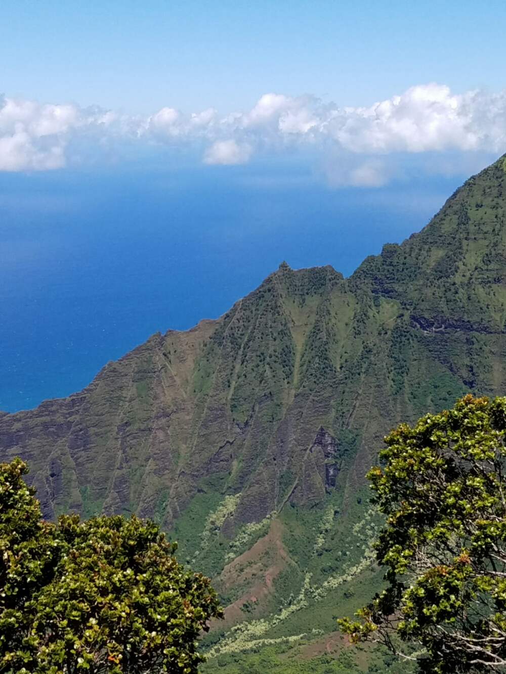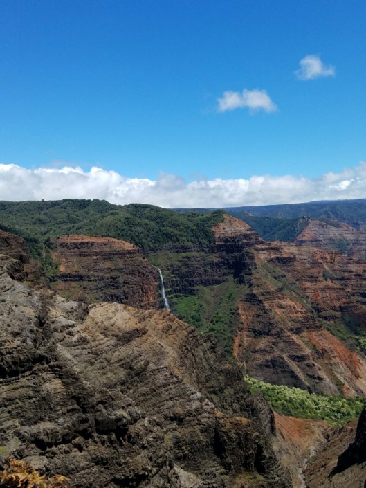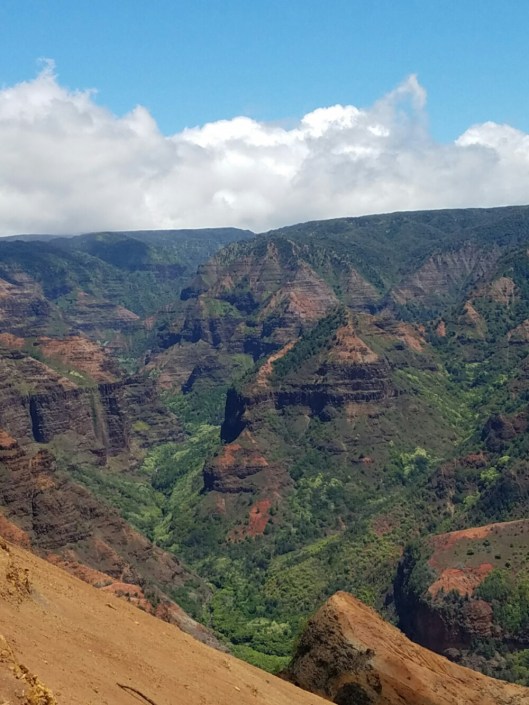 Next on our list, Waimea Canyon, the Grand Canyon of the Pacific. Stunningly beautiful and serene. As we were pulling into the lookout, there were two blacktail deer on the ridge above the parking lot. One buck, the other possibly a doe. And lots of “free range” roosters. The nene may be the Hawaii state bird, but the rooster is the unofficial bird of Kauai.