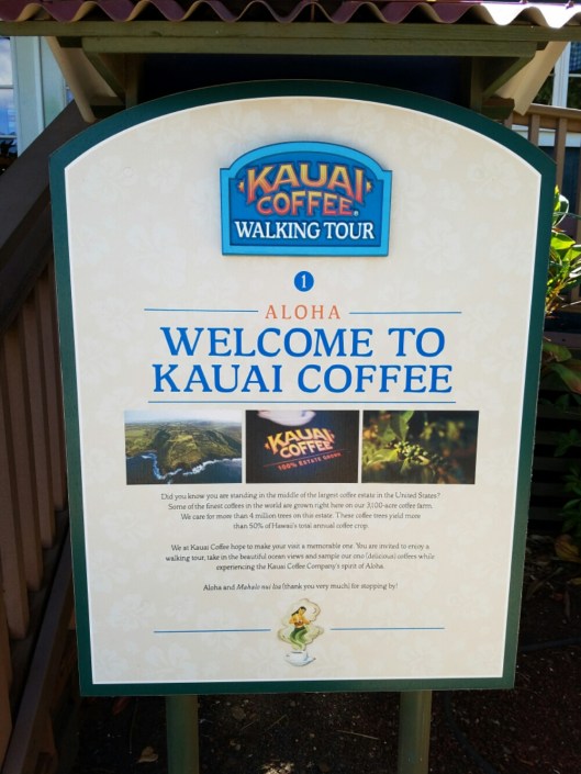 First stop, Kauai Coffee Company. We sampled a lot of coffee, and learned a lot on the self-guided tour. Did you know dark roast coffee has more body, but medium roast has more caffeine? The coffee was excellent, and their sense of humor evident throughout.