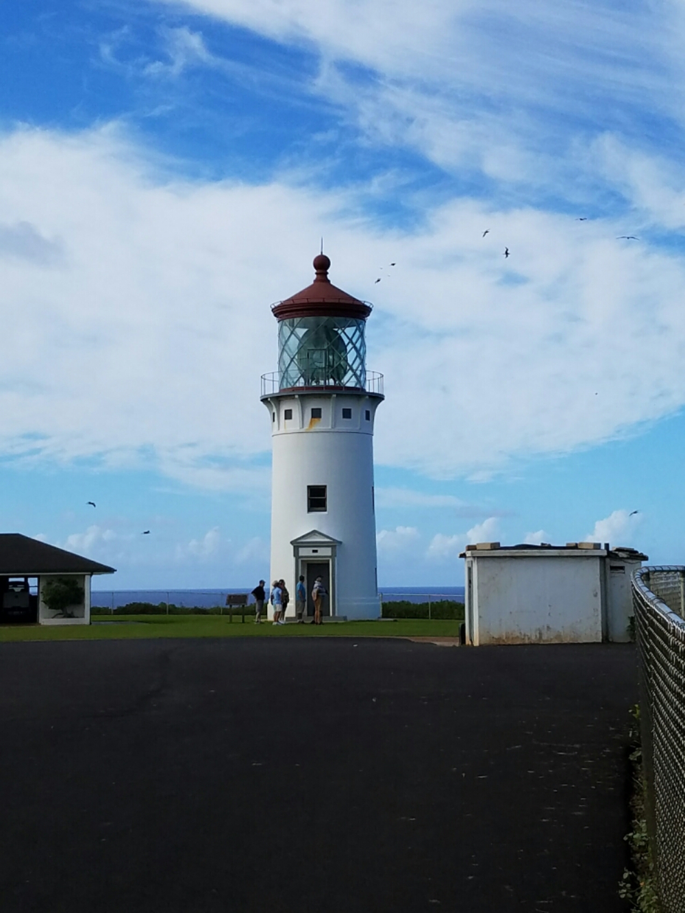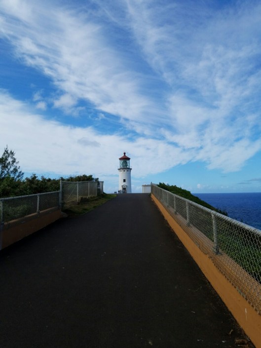 A drive back down the mountain into town where we stopped for lunch at Porky’s. Sausage or hot dog covered with kalua pork, or a grilled cheese with kalua pork. We double checked the time and distance to the light house, and realized we were going to be cutting it very close as they closed at 4PM.