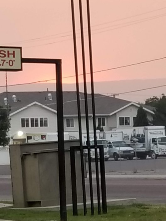 We checked into our hotel, relaxed a bit and decided on a place to eat. The smoke from the wildfires burning in the area was a bit thicker than when we’d arrived, and we noticed ash on the car. We were happy to realize the red glow on the way back from dinner was the sun setting and not flames in the distance. Tomorrow we plan to be up and out a bit earlier than usual, and hopefully get into some clearer air and back to blue sky. Our prayers are with all those fighting the fires, those who are being evacuated, and those keeping a close eye on the situation in case they need to evacuate.