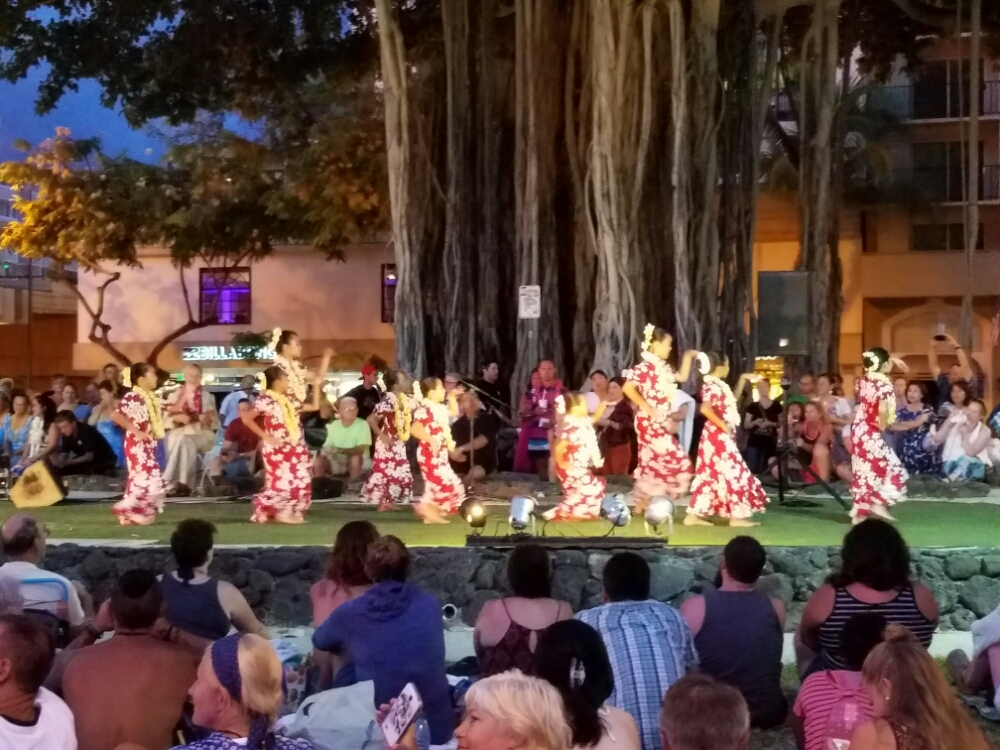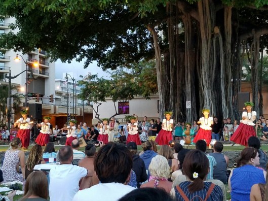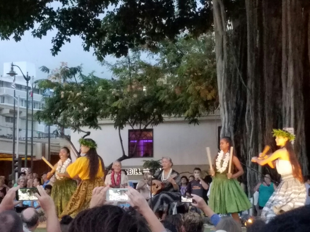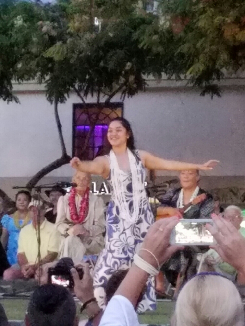 Tonight was a trio and one dancer – Joan “Aunty Pudgie”Young and Puamelia. It was a very interactive show with the audience, and very educational, too.