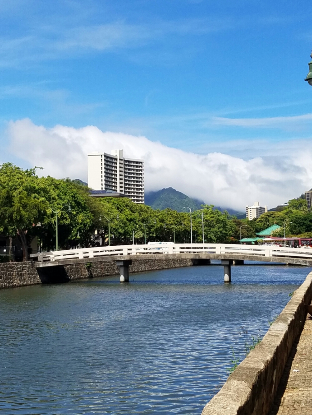 After the long day yesterday, we planned a “down” day today – nothing specifically planned. We woke leisurely (well, leisurely for us, at least) and were downstairs in search of coffee just after 8AM. The line at the coffee shop in the hotel was long and didn’t seem to be moving too quickly, so we headed out to the strip. The next closest also had a good sized line, so we opted for our “secret” spot inside the Waikiki Shopping Center. A small line that was moving quickly, and we soon had coffee and breakfast food in hand. As we’d already ventured outside and onto the strip, we decided to wander down a few streets we’d been meaning to visit.